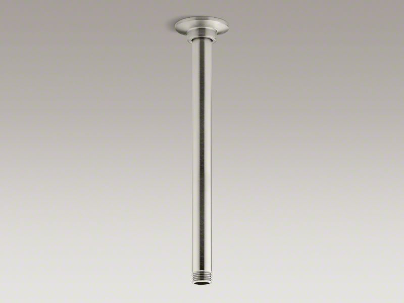 Kohler® Shower Arm and Flange, Ceiling Mount, Series: 7392, 11-15/16 in Arm Length, 2-1/4 in Arm Width, For Use with: Overhead Rainhead, 1/2 in NPT, Brass, Vibrant® Brushed Nickel, 11-15/16 in H