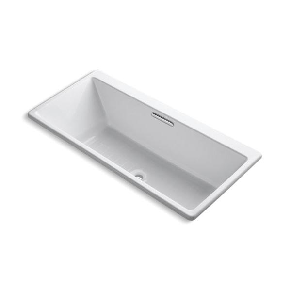 Kohler® Bathtub, Reve®, Rectangular, 67 in Length, 32 in Width, 19-1/16 in Height, 75 gal Water, Center Drain Location, 1-1/2 in Drain, 49 x 22 in Bottom/62-1/2 x 24-3/4 in Top Basin Bathing Well, 15-1/4 in Overflow Height, Drop-In/Under Mount, Cast Iron, Enamel Coated/White