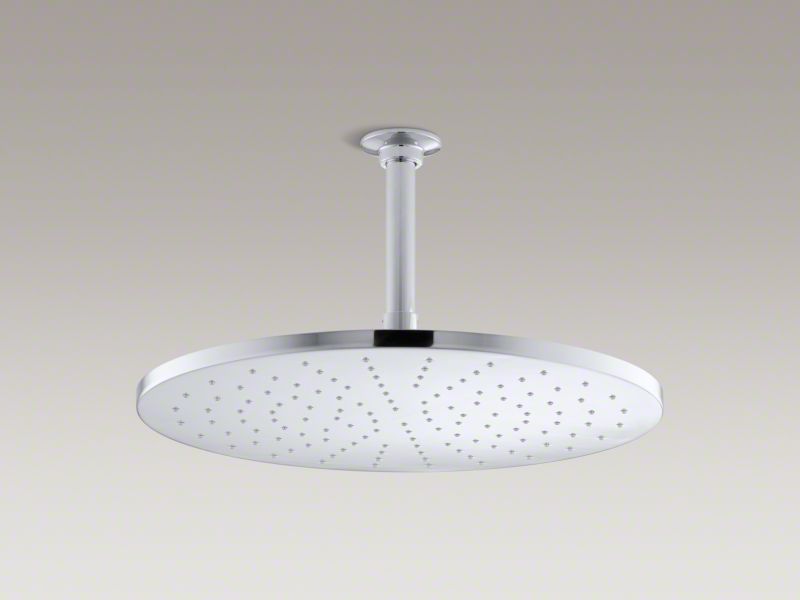 Enjoy a shower that simulates the soaking deluge of a warm summer downpour. This KOHLER® contemporary-style round ceiling-mount/wall-mount rainhead features innovative Katalyst® air-induction technology, which efficiently mixes air and water to produce large water droplets and deliver a powerful, thoroughly drenching overhead shower experience. Its clean design and durable finish coordinate with many other KOHLER® faucets and accessories.