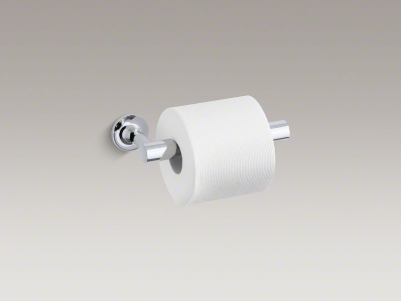KOHLER® Purist accessories combine a sculptural form with the simple functionality of architectural style. Constructed of durable metal, this toilet paper holder uses an innovative pivot mechanism that simplifies changing paper rolls. Available in an array of KOHLER® finishes to complement any bathroom decor.