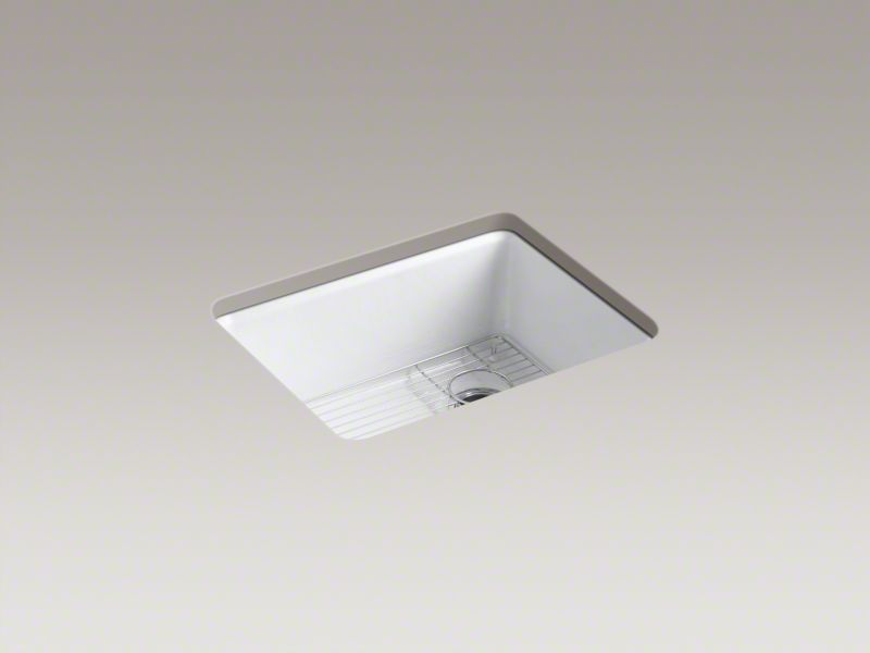 Sized to fit small spaces, the KOHLER® Riverby sink is an elegant and versatile addition to the kitchen as a primary, secondary, bar, or utility sink. A single-bowl provides ample space to soak and wash large items, while front and back beveled edges help keep water in the undermount kitchen sink . A sloped base to a single offset drain minimizes water pooling. Crafted from enameled cast iron, this sink resists chipping, cracking, or burning for years of beauty and reliable performance. An included custom-fit sink rack also helps protect the sink surface from daily wear.