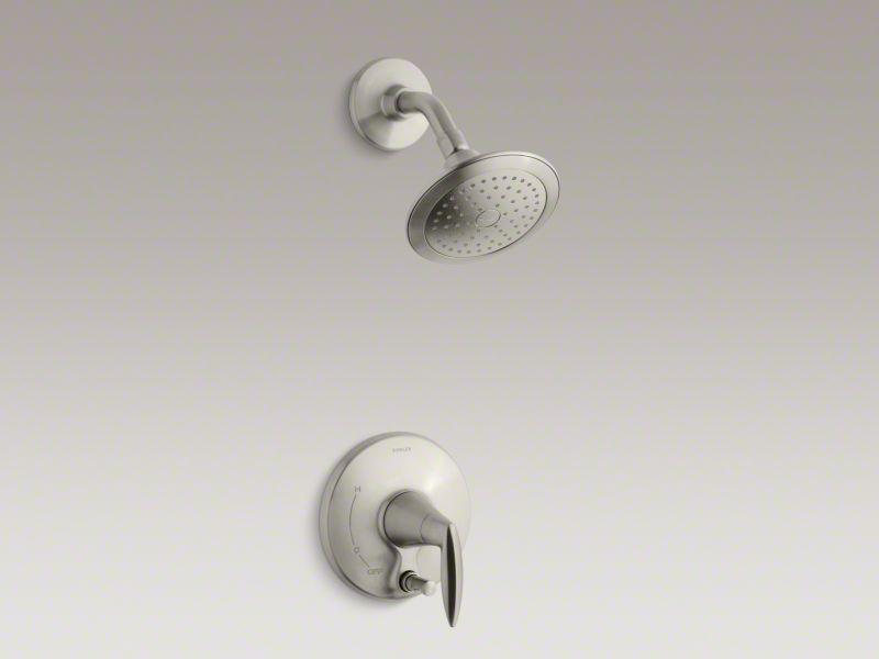 Kohler® Shower Trim, Alteo®, 2.5 gpm Shower Flow Rate, 2 Faucet Holes, Integrated Pushbutton Diverter Spout, 1 Handles, Metal Lever, 6-7/16 in Dia Trim, Pressure Balanced Valve/Cartridge, 1/2 in NPT Valve Inlet Connection, Hand Shower Yes/No: No, Spray Pattern: Katalyst®, 1 Spray Functions, Wall Mount, For Use with: Rite-Temp®/HiFlow Rite-Temp® Valves, Vibrant® Brushed Nickel