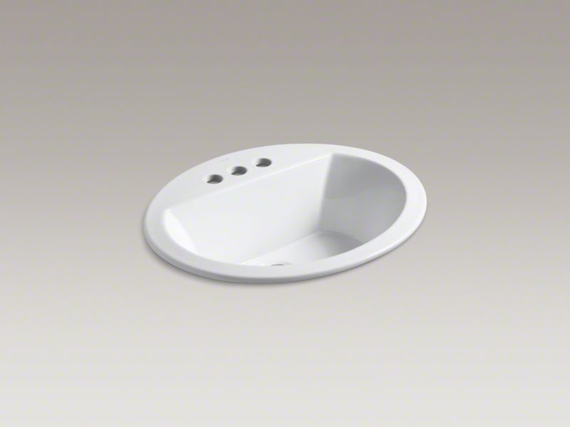Kohler® Self-Rimming Bathroom Sink, Bryant®, Oval, 17-3/8 in L x 11-1/8 in W Bowl, 7/8 in Drain Opening, 3 Faucet Holes, 4 in Faucet Hole Spacing, 1 Basin, 20-1/8 in W x 16-1/2 in D x 7-5/8 in H, Drop-In Mount, Vitreous China, White, ADA Compliance (Yes/No): Yes