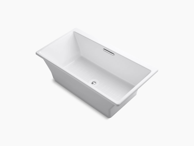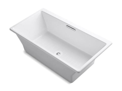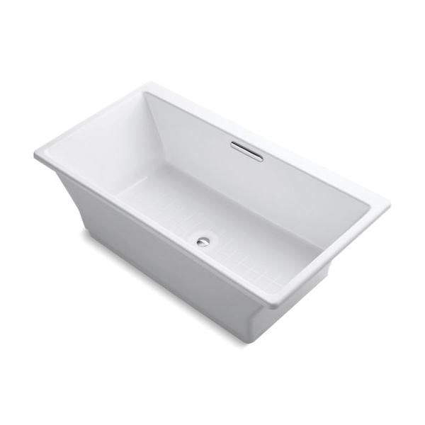 Kohler® Bathtub, Reve®, Rectangular, 66-15/16 in Length, 36 in Width, 22-1/16 in Height, 90 gal Water, Center Drain Location, 1-1/2 in Drain, 49 x 26-1/2 in Bottom Basin/62-1/2 x 29-1/4 in Top Basin Bathing Well, 15-1/4 in Overflow Height, Freestanding Mount, Cast Iron, Enamel Coated/White, Import