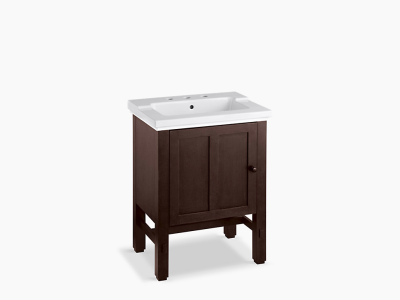 Kohler® Vanity, Tresham®, 32-1/2 in Overall Height, 23-3/4 in Overall Width, 18-1/4 in Overall Depth, Floor Mount, Solid Wood/Veneer Cabinet, Woodland Cabinet, 1 Doors
