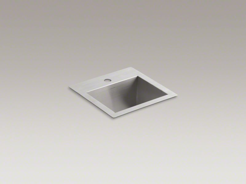 Kohler® 3840-1-NA Vault™ Bar Sink, Squared Shape, 1 Faucet Holes, 15 in W x 15 in W x 9-5/16 in D, Top/Undermount Mounting, Stainless Steel