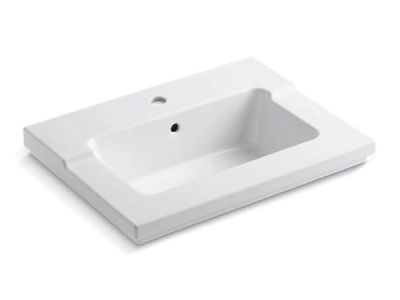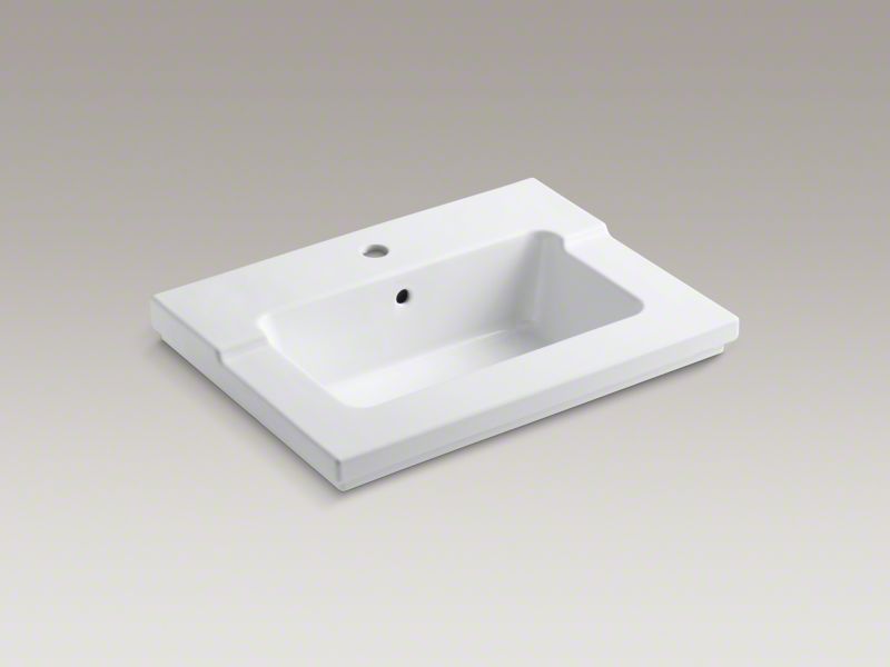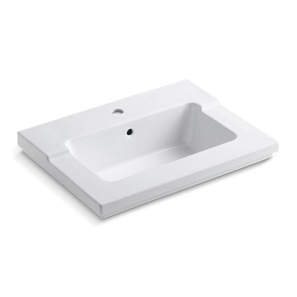 Kohler® Bathroom Sink, Tresham®, Rectangular, 19-1/16 in L x 10-1/2 in W Bowl, 1-3/4 in Drain Opening, 1 Faucet Holes, 1 Basin, 25-7/16 in W x 19-1/16 in D x 7-7/8 in H, Vanity Top Mount, Vitreous China, White