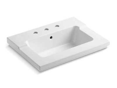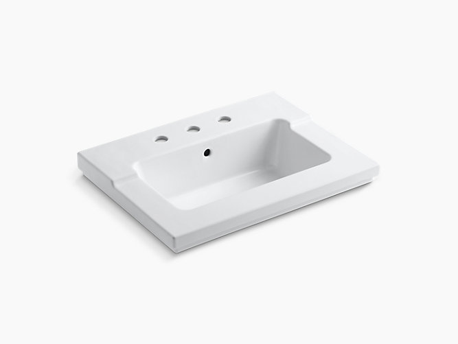 Kohler® 2979-8-0 Tresham® Bathroom Sink With Overflow Drain, Rectangular Shape, 4 in Faucet Hole Spacing, 25-7/16 in W x 19-1/16 in D x 7-7/8 in H, Vanity Top Mount, Vitreous China, White