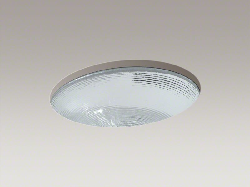 Ideal for creating a dramatic bathroom setting, KOHLER® Whist marries performance and durability with a look that is visually striking. This oval undermount bathroom sink's distinctive glass basin features a concentric line pattern that gives the feeling of gentle ripples on the surface of a pond.