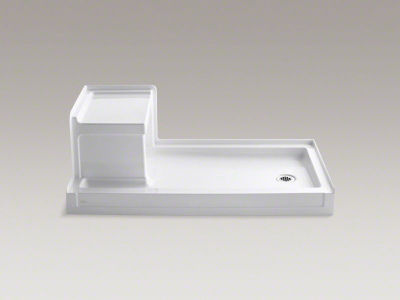 With crisp lines and an elegant border, this KOHLER® Tresham shower base brings classic American design to the bathroom. Designed for comfort, this 60" x 32" acrylic base offers a built-in seat and low threshold for easy access. Available in a palette of KOHLER® colors to complement any décor.