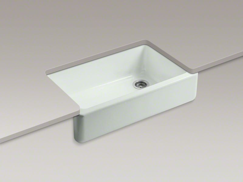 Kohler® 6489-FF Whitehaven® Self-Trimming® Self-Trimming Kitchen Sink With Tall Apron, Rectangular Shape, 35-11/16 in W x 21-9/16 in D x 9-5/8 in H, Reinforced Base Mount, Enameled Cast Iron, Sea Salt™
