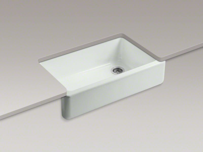 Kohler® Self-Trimming Kitchen Sink, Whitehaven® Self-Trimming®, Rectangular, 30-3/4 in L x 18-1/16 in W x 9 in D Bowl, 3-5/8 in Drain Opening, 1 Basin, 35-11/16 in W x 21-9/16 in D x 9-5/8 in H, Reinforced Base Mount, Enameled Cast Iron, Sea Salt™