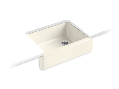 Kohler® 6487-96 Whitehaven® Self-Trimming® Self-Trimming Kitchen Sink With 8-3/16 in Tall Apron, Rectangular Shape, 21-9/16 in W x 29-1/2 in D x 9-5/8 in H, Reinforced Base Mount, Enameled Cast Iron, Biscuit