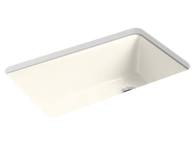 Kohler®, 5871-5UA3-96, Kitchen Sink, Riverby® Collection, Rectangular Shape, 30-1/4 in Bowl Length, 15-13/16 in Bowl Width, 9 in Bowl Depth, 3-7/8 in Drain Opening, 5 Faucet Holes, 4 in Faucet Hole Spacing, 1 Bowls, 33 in L x 22 in W x 9-5/8 in H Overall, Undermount Mounting, Enameled Cast Iron