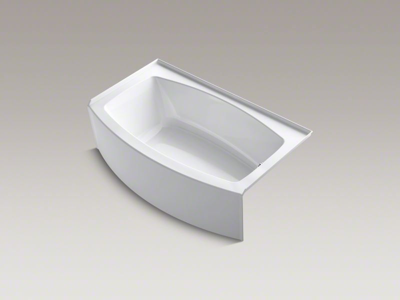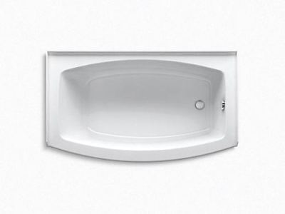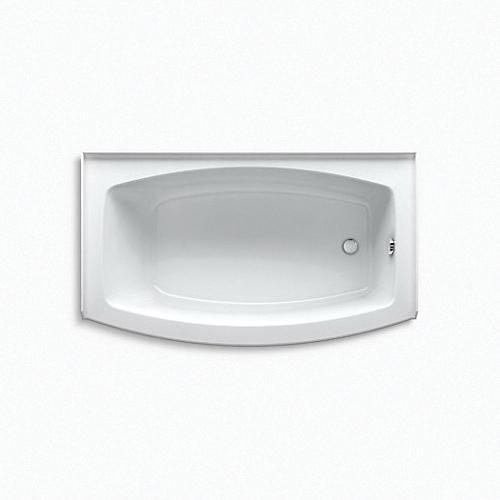 Kohler® Bathtub, Expanse®, Soaking Hydrotherapy Bath Therapy, Curved Shape, 60 in Length, 36 in Width, 18-1/4 in Height, 59.8 gal Water, Right Drain Location, 1-1/2 in Drain, 45-5/16 x 25-9/16 in Bottom Basin/52-9/16 x 28-1/16 in Top Basin Bathing Well, 12-11/16 in Soaking Depth, 12-11/16 in Overflow Height, 3-Wall Alcove Mounting, Acrylic, White