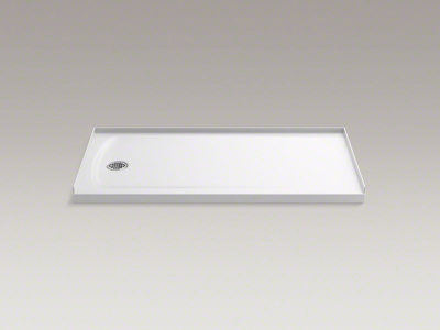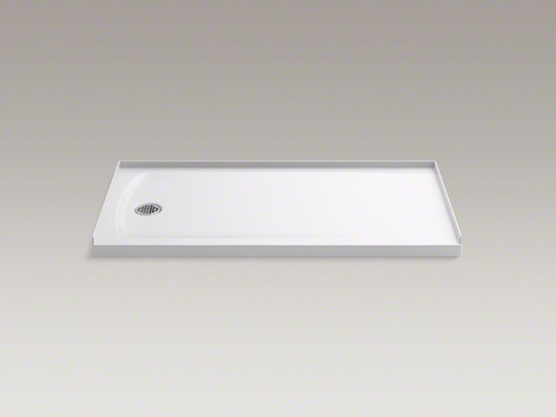 Kohler® 1937-0 Ballast™ Single Threshold Alcove Shower Base, White, Left Drain, 60 in L x 32 in W x 3-3/16 in D