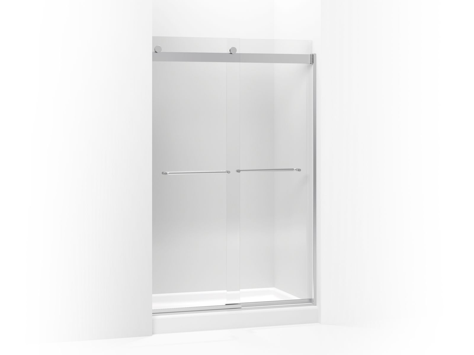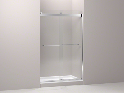 Bringing new technology and sleek style to the contemporary bath, KOHLER® Levity clear sliding shower doors feature an innovative bypass system and roller design that provide an amazingly smooth, quiet sliding action for a difference you can feel. Levity's unique design, including fully bypassable glass panels, makes installation easier than ever and allows for adjustability while the door is hanging. Gently curved towel bars accentuate the contemporary style of Levity shower doors.
