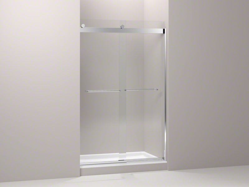 Kohler® 706014-L-SH Levity® Sliding Shower Door, Frameless Frame, Clear Tempered Glass, Bright Silver, 1/4 in THK Glass, 44-5/8 to 47-5/8 in W Opening