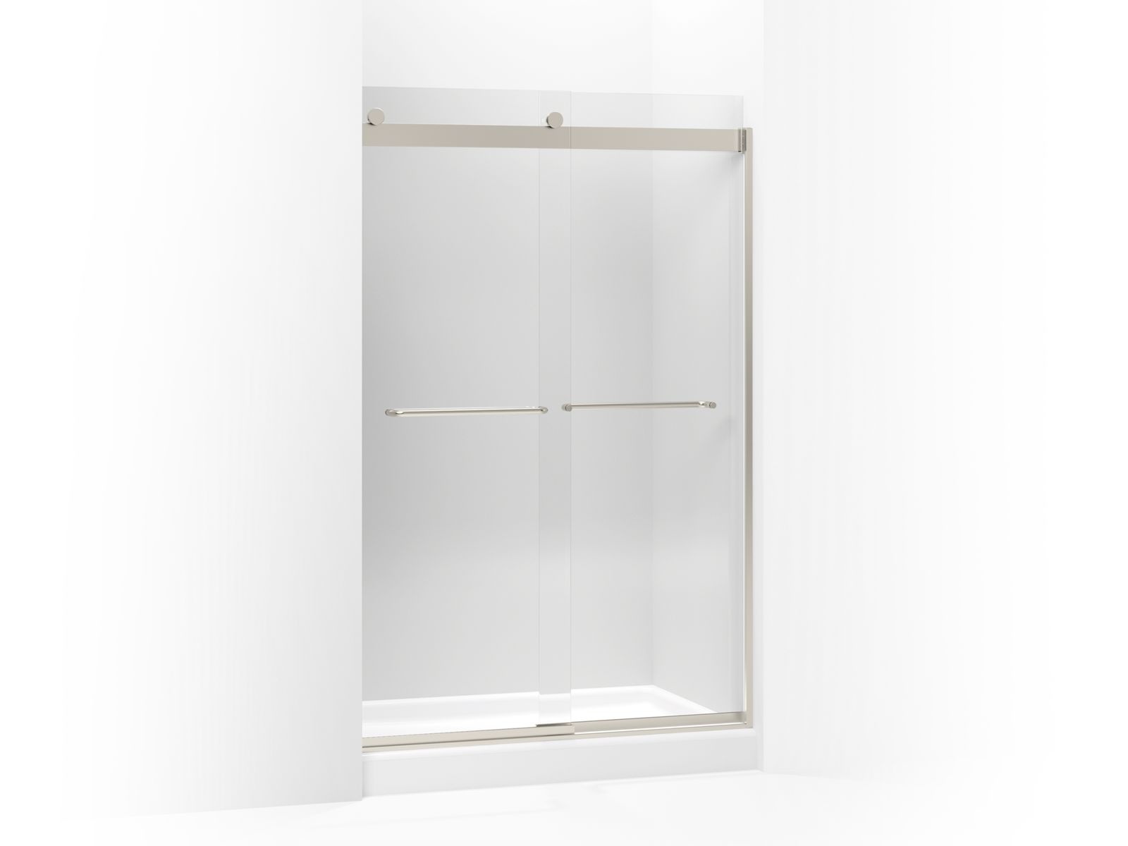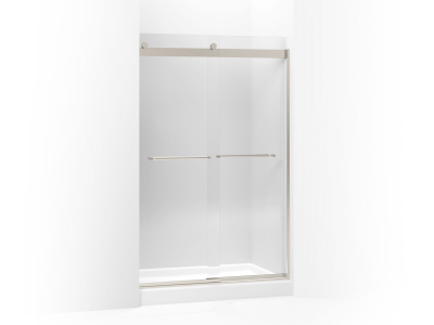 Kohler® Sliding Shower Door, Levity®, 44-5/8 to 47-5/8 in Opening Width, 66-7/8 in Opening Height, Frameless, Clear Tempered Glass, 1/4 in Glass Thickness, 74 in Overall Height, 47-5/8 in Overall Width, 18-1/16 to 21-1/16 in Walk Through, Anodized Aluminum, Matte Nickel