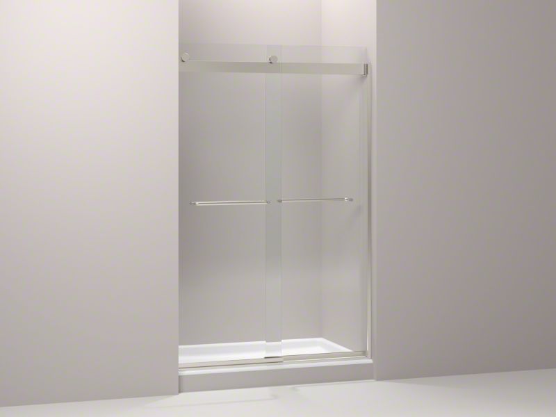 Bringing new technology and sleek style to the contemporary bath, KOHLER® Levity clear sliding shower doors feature an innovative bypass system and roller design that provide an amazingly smooth, quiet sliding action for a difference you can feel. Levity's unique design, including fully bypassable glass panels, makes installation easier than ever and allows for adjustability while the door is hanging. Gently curved towel bars accentuate the contemporary style of Levity shower doors.
