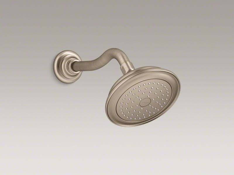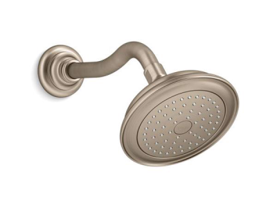 Kohler® Single-Function Shower Head, Artifacts®, 2.5 gpm Minimum Flow Rate, 1/2 in NPT, Round, Number of Sprays: 1, Wall Mount, 6 in Overall Width, 3-15/16 in Overall Height, Metal, Vibrant® Brushed Bronze
