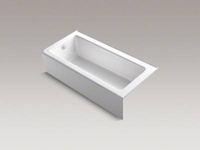 An update of a bestseller, KOHLER® Bellwether features a clean, contemporary design in a popular, industry-standard size. This integral apron simplifies alcove installation, while a low step-over threshold allows for comfortable entry and exit. Bellwether's wide ledges provide storage space for towels, toiletries, and other items. Crafted from enameled cast iron, this 66" x 32" rectangular alcove bath offers years of reliable performance. Safeguard® slip-resistant surface enhances safety.