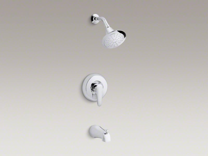 With its contemporary curves and sleek, simple lines, the July faucet collection brings sophisticated European styling to your bathroom at an approachable price. This bath and shower trim set features a lever handle, bath spout, and a single-function showerhead that provides optimal water coverage. Pair this trim with a Rite-Temp pressure-balancing valve, which maintains your desired water temperature during pressure fluctuations.