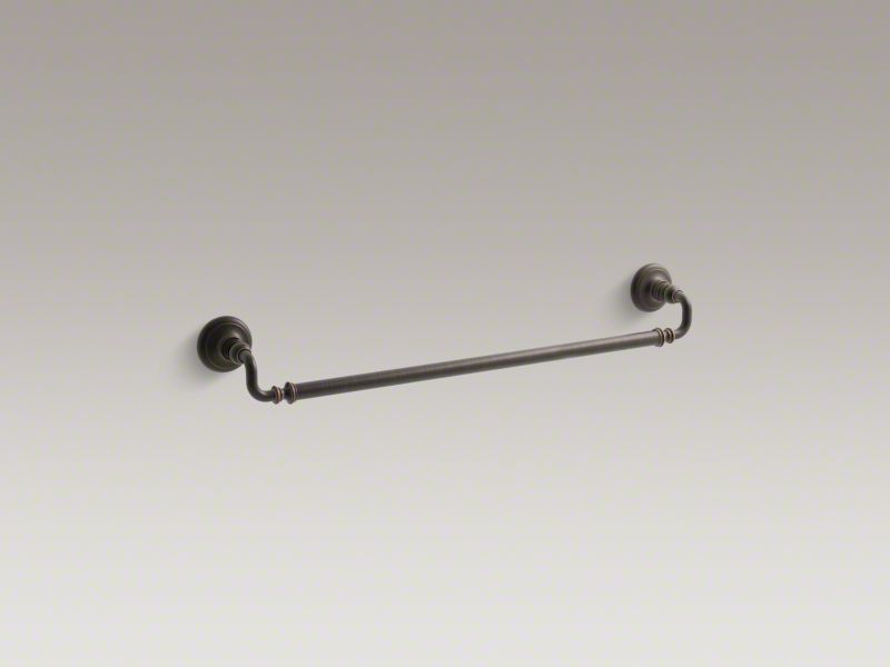 Kohler® Towel Bar, Artifacts®, 24 in Bar Length, 27 in Overall Length, 3-1/2 in Overall Depth, 3 in Overall Height, 3 in Base, Metal, Oil Rubbed Bronze