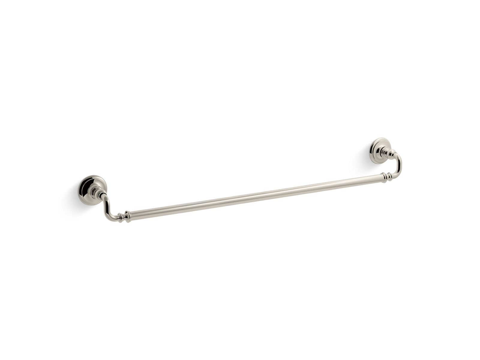 Kohler® Towel Bar, Artifacts®, 30 in Bar Length, 33 in Overall Length, 3-1/2 in Overall Depth, 3 in Overall Height, 3 in Base, Metal, Vibrant® Polished Nickel