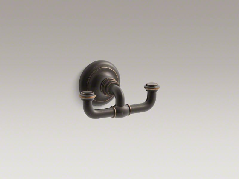 Kohler® Robe Hook, Artifacts®, 2 Hooks, 2-5/8 in Base Dia, 4-7/8 in Overall Width, 2-5/8 in Overall Depth, 2-5/8 in Overall Height, Wall Mount, Metal, Oil Rubbed Bronze
