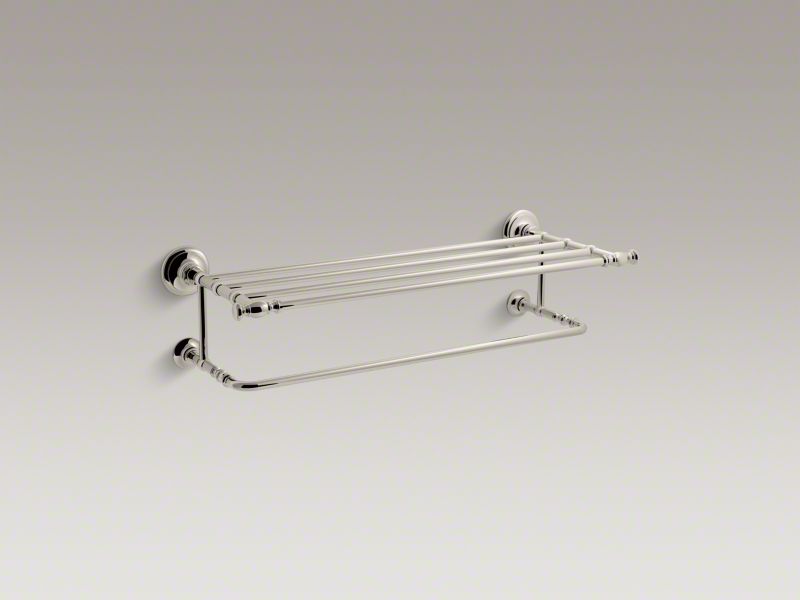 Create a look all your own with the KOHLER® Artifacts collection. Timeless and classic in its inspiration, Artifacts allows you to coordinate faucets, accessories, showering, and finishes to express your personal style. This hotelier combines quality craftsmanship with a vintage artisan design to lend character and authenticity to your space. The upper shelf accommodates a stack of plush towels, while the lower bar is convenient for hanging towels or washcloths.