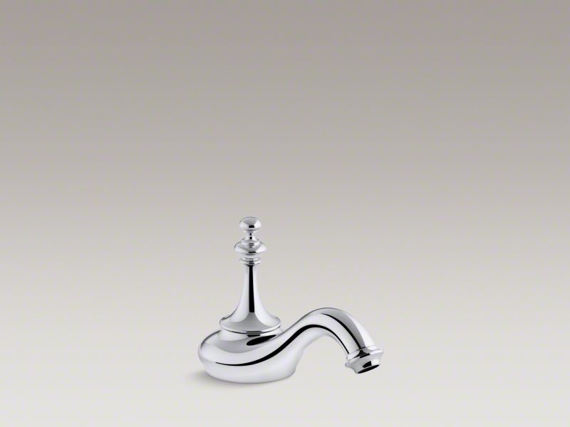 Kohler® Bathroom Sink Spout, Tea Design, Artifacts®, For Use with: Widespread Bathroom Sink Faucet, 1.2 gpm, 8 to 16 in Center, Stationary Spout, 5-3/8 in Spout Reach, 1-3/8 in H Spout, Brass, Polished Chrome, 5-3/8 in L x 3-1/8 in W x 4-11/16 in H