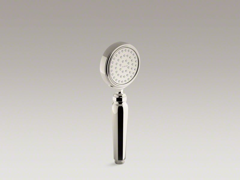 Kohler® Hand Shower, 1-Function, Artifacts®, 2 gpm, 1/2-14 Hose Thread, Number of Sprays: 1, Spray Pattern: Full Body, 1-5/16 in Overall Length, 3-5/8 in Overall Width, 9-7/8 in Overall Height, Metal, Vibrant® Polished Nickel