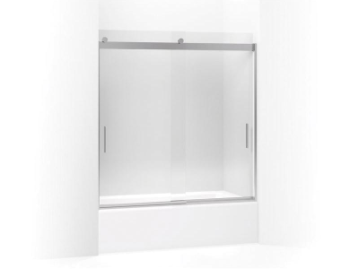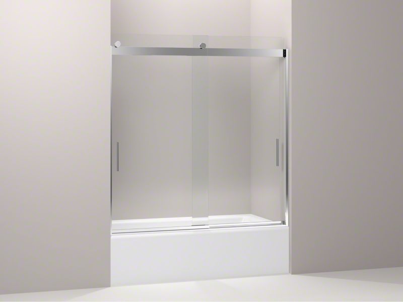 Kohler® 706003-L-SHP Levity® Sliding Bath Door, Frameless Frame, Crystal Clear Tempered Glass, Bright Polished Silver, 3/8 in THK Glass, 56-7/8 in H Opening, 56-5/8 to 59-5/8 in W Opening