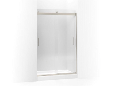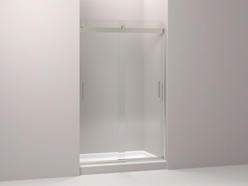 Kohler® Sliding Shower Door, Levity®, 44-5/8 to 47-5/8 in Opening Width, 66-7/8 in Opening Height, Frameless, Clear Tempered Glass, 1/4 in Glass Thickness, 74 in Overall Height, 47-5/8 in Overall Width, 18-1/16 to 21-1/16 in Walk Through, Vertical Blade, Anodized Aluminum, Matte Nickel