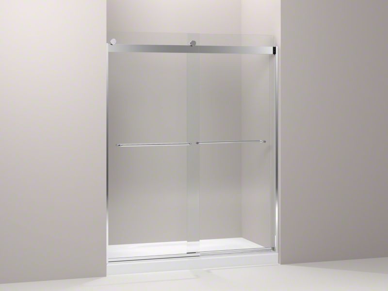 Kohler® 706015-L-SH Levity® Sliding Shower Door With Towel Bar, Frameless Frame, Crystal Clear Glass, Bright Silver, 1/4 in THK Glass