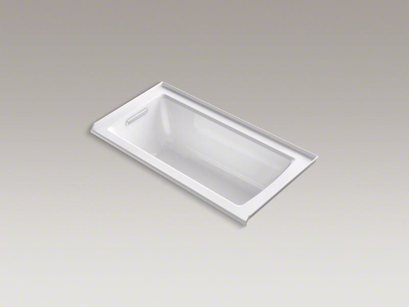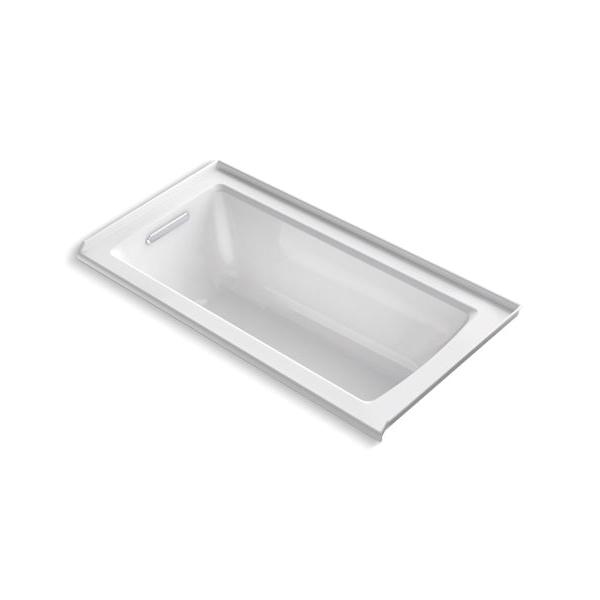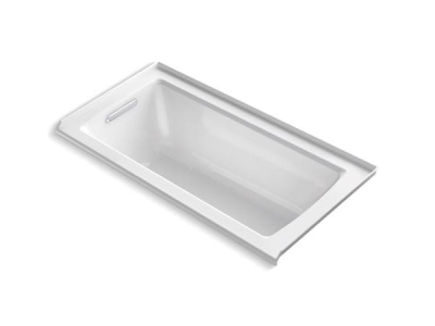 Kohler® Bathtub, Archer®, Soaking Hydrotherapy Bath Therapy, Rectangular, 60 in Length, 30 in Width, 20-1/4 in Height, 57 gal Water, Left Drain Location, 1-1/2 in Drain, 45-1/8 x 19-11/16 in Bottom Basin/52-1/8 x 22-1/16 in Top Basin Bathing Well, 15-1/8 in Soaking Depth, 15-1/8 in Overflow Height, 3-Wall Alcove Mount, Acrylic, White