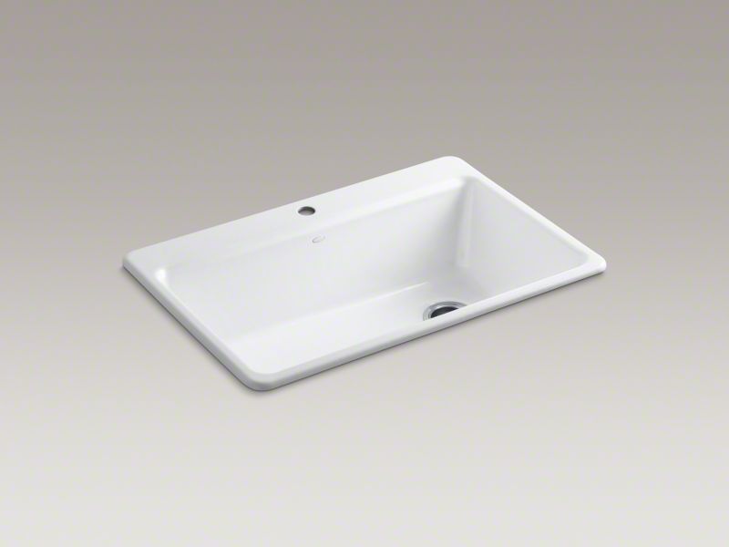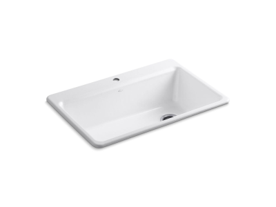 Kohler®, 5871-1A2-0, Kitchen Sink With Accessories, Riverby® Collection, Rectangular Shape, 30-1/4 in Bowl Length, 15-13/16 in Bowl Width, 9 in Bowl Depth, 3-7/8 in Drain Opening, 1 Faucet Holes, 1 Bowls, 33 in L x 22 in W x 9-5/8 in H Overall, Top Mounting, Enameled Cast Iron, White