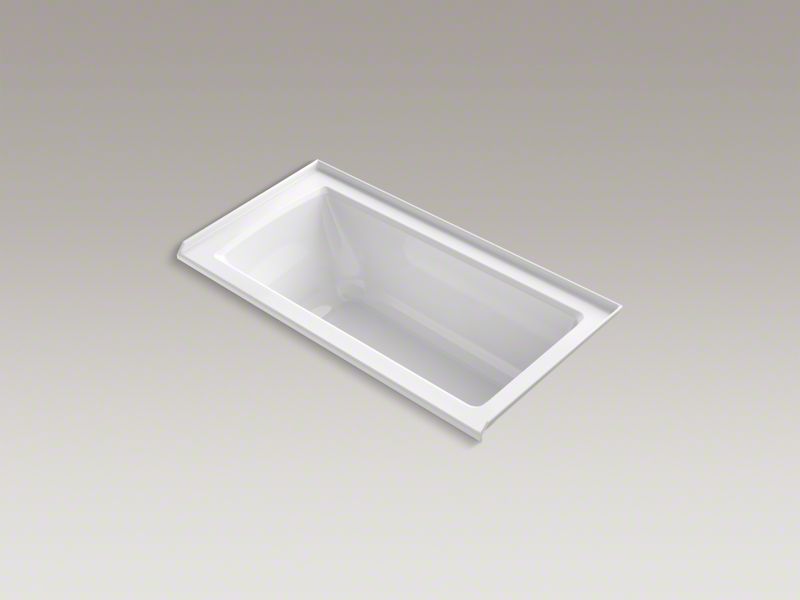 Kohler® 1946-R-0 Archer® Bathtub With Integral Flange, Soaking Hydrotherapy, Rectangular Shape, 60 in L x 30 in W, Right Drain, White