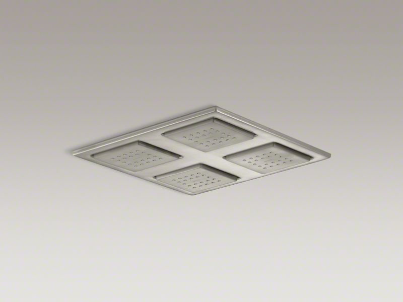 With four 22-nozzle sprayheads, WaterTile Square Rain overhead showering panels provide luxurious water delivery that even Mother Nature would envy. Four fully adjustable and pivoting square sprayheads distribute a relaxing shower of water that simulates a gentle summer rain.