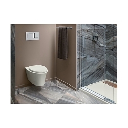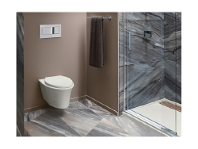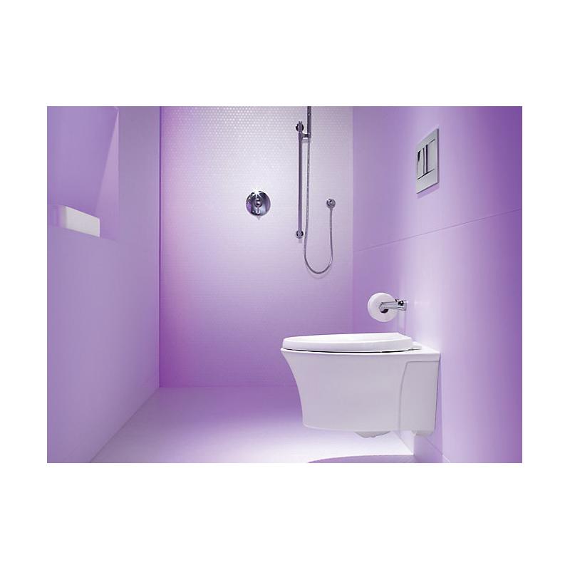 The Veil wall-hung toilet saves up to 12 in of precious bathroom space over Kohler®s longest floor-mount models. The mounting hardware is completely concealed, giving Veil a sleek, seamless look that is incredibly easy to clean.