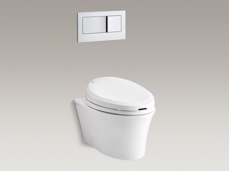 The Veil wall-hung toilet saves up to 12 in of precious bathroom space over Kohler®s longest floor-mount models.