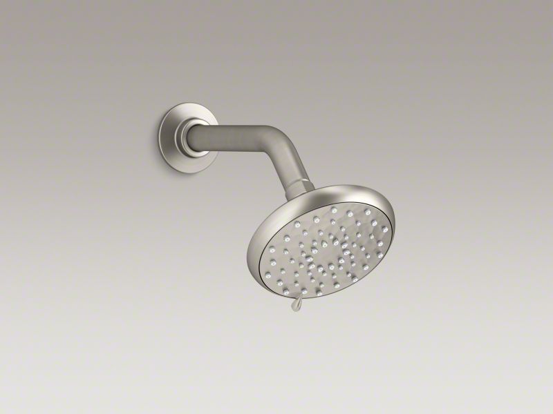 Kohler® Shower Head, Multi-Function, Awaken® B110, 2 gpm Maximum Flow Rate, 1/2 in NPT, Round, Number of Sprays: 3, Wall Mount, 4-5/8 in Overall Length, 4-5/8 in Overall Width, 2-3/4 in Overall Height, Metal, Vibrant® Brushed Nickel