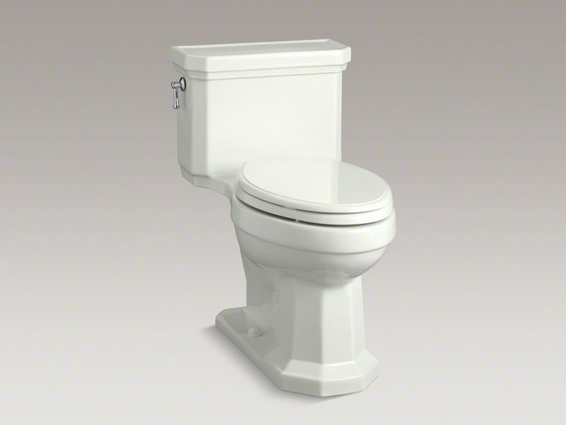 Capture the classic look of the 1930s with the Kathryn collection's angular lines and molded edges. This one-piece toilet features a convenient chair-like height and compact elongated bowl for comfortable use, as well as a concealed trapway for sleek looks and simple cleaning. A 1.28-gallon flush provides significant water savings of up to 16,500 gallons per year, compared to a 3.5-gallon toilet, without sacrificing performance. This tank features innovative AquaPiston(TM) technology, a patented flush engine that delivers a fast, powerful, and plug-free flush.