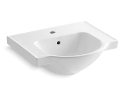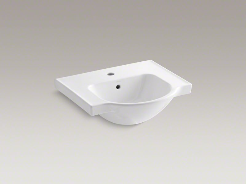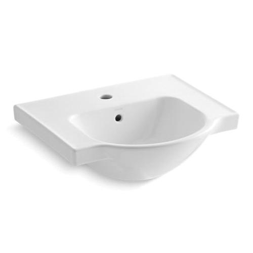 Kohler® Bathroom Sink Basin, Veer™, Arched, 13-3/4 in L x 12-5/8 in W Bowl, 1-3/4 in Drain Opening, 1 Faucet Holes, 1 Basin, 21 in W x 18-3/16 in D x 8-1/16 in H, Wall Mount, Vitreous China, White
