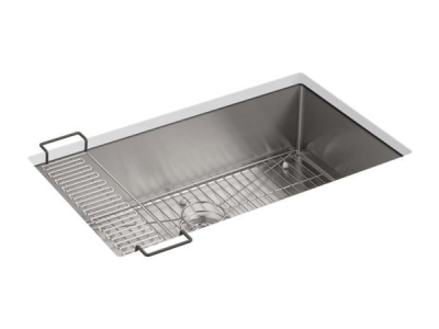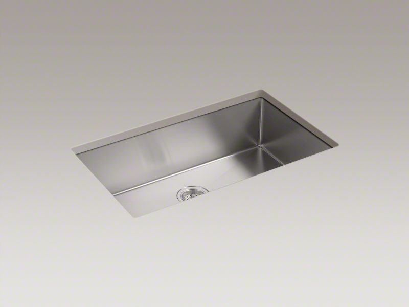Kohler®, 5285-NA, Kitchen Sink, Strive™ Collection, Rectangular Shape, 30-1/4 in Bowl Length, 16-9/16 in Bowl Width, 9 in Bowl Depth, 3-3/4 in Drain Opening, 1 Bowls, 32 in L x 18-5/16 in W x 9-5/16 in H Overall, Undermount Mounting, Stainless Steel
