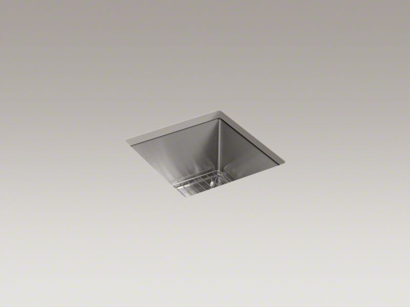 Kohler®, 5287-NA, Bar Sink, Strive™ Collection, Squared Shape, 13-1/4 in Bowl Length, 13-1/4 in Bowl Width, 9-5/16 in Bowl Depth, 3-11/16 in Drain Opening, 1 Bowls, 15 in W x 15 in L x 9-5/16 in D Overall, Undermount Mounting, Stainless Steel