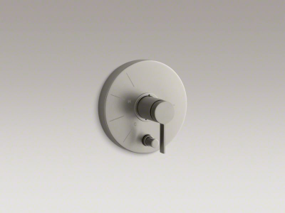 With their streamlined style and understated detailing, Stillness faucets and accessories are an ideal complement for modern bathrooms. This valve trim includes a lever handle and diverter. Pair this trim with a Rite-Temp pressure-balancing valve with push-button diverter to maintain your desired water temperature during pressure fluctuations.