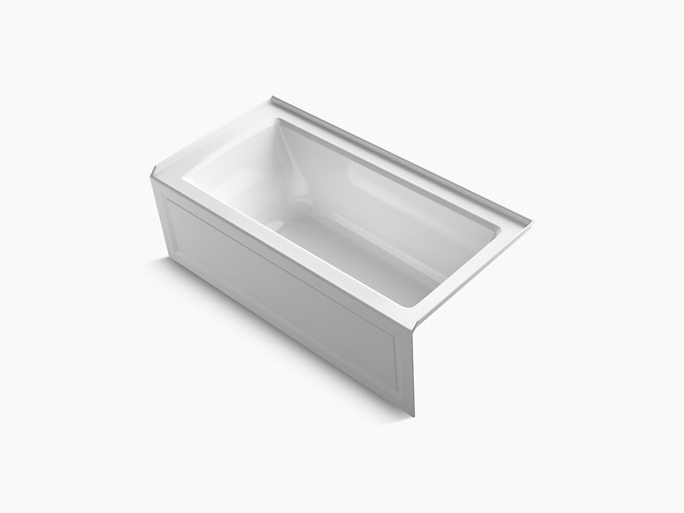 Kohler® 1946-RA-0 Archer® Bathtub With Integral Apron and Integral Flange, Soaking Hydrotherapy, Rectangular Shape, 60 in L x 30 in W, Right Drain, White