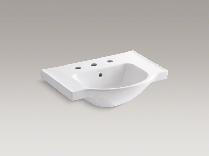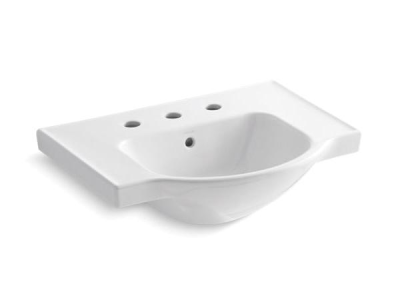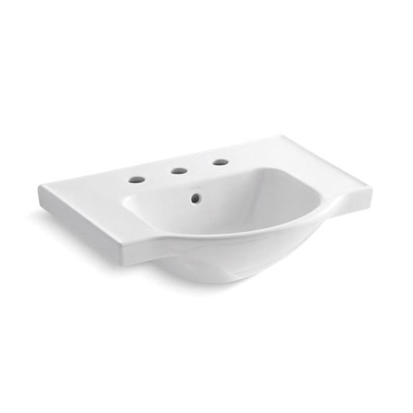 Kohler® Bathroom Sink Basin, Veer™, Arched, 14-7/8 in L x 12-5/8 in W Bowl, 1-3/4 in Drain Opening, 3 Faucet Holes, 4 in Faucet Hole Spacing, 1 Basin, 24 in W x 18-1/4 in D x 8 in H, Wall Mount, Vitreous China, White